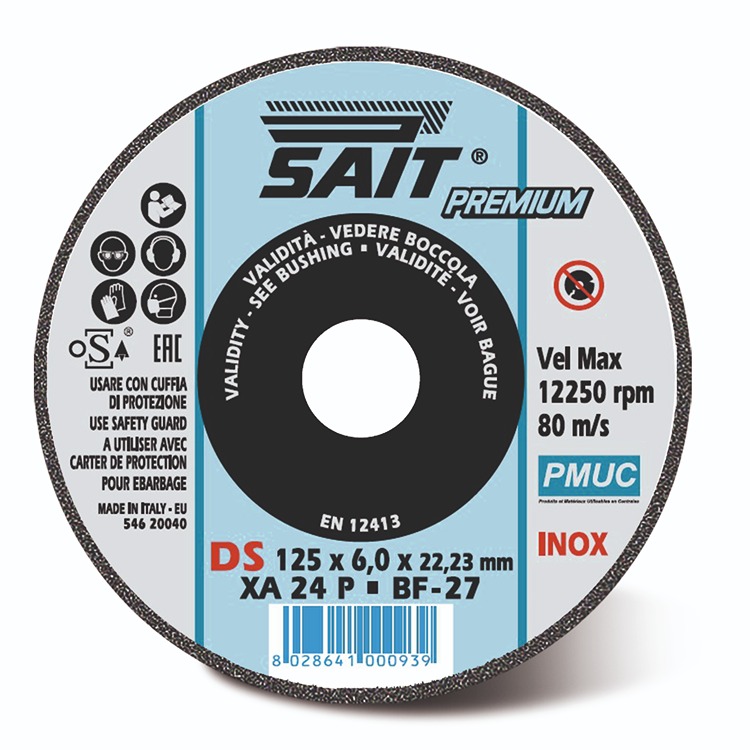 This is 100000 Grinding Wheel 125mm Diameter manufactured by SAIT. The manufacturer part number is 1000000093. It has a maximum 12250rpm safe speed . The product pmuc, is a highly preferred choice for users. The bore has a 22,23mm size. It is 6mm thick. Applications Information involves use in nuclear power station. Additionally, it includes a deburring disc type disc . It has a model 1000000093. In addition, it has stainless steel, steel cut material . Its overall disc diameter is 125mm .