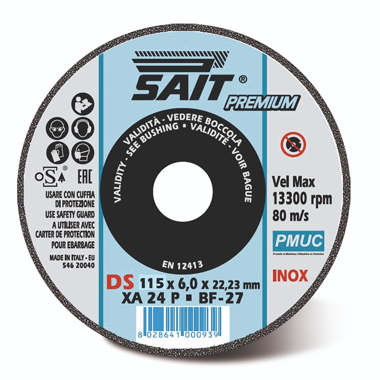 This is 100000 Grinding Wheel 115mm Diameter manufactured by SAIT. The manufacturer part number is 1000000095. It has a maximum 13300rpm safe speed . The product pmuc, is a highly preferred choice for users. The bore has a 22,23mm size. It is 6mm thick. Applications Information involves use in nuclear power station. Additionally, it includes a deburring disc type disc . It has a model 1000000095. In addition, it has stainless steel, steel cut material . Its overall disc diameter is 115mm .