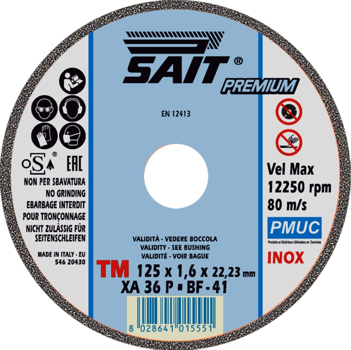 This is 100000 Cutting Wheel 125mm Diameter manufactured by SAIT. The manufacturer part number is 1000001555. It has a maximum 12250rpm safe speed . The product pmuc, is a highly preferred choice for users. The bore has a 22,23mm size. It is 1.6mm thick. Applications Information involves use in nuclear power station. Additionally, it includes a cutting disc type disc . It has a model 1000001555. In addition, it has stainless steel, steel cut material . Its overall disc diameter is 125mm .
