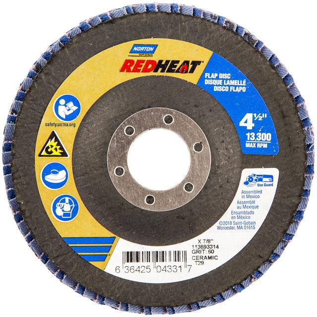 This is manufactured by Norton. The manufacturer part number is 63642504331. Its diameter is 4.50" (114.30mm). It is shipped in bulk package . It has a classic red colour. While its abrasive grit is p60. Abrasive Grade Info: coarse. The product is widely employed in general purpose. It is manufactured from rugged ceramic alumina abrasive materials. The product is designated with the ear99 code number.