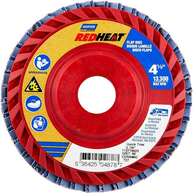 This is manufactured by Norton. The manufacturer part number is 63642504878. Its diameter is 4.50" (114.30mm). It is shipped in bulk package . It has a classic red colour. While its abrasive grit is p60. Abrasive Grade Info: coarse. The product is widely employed in general purpose. It is manufactured from rugged ceramic alumina abrasive materials. The product is designated with the ear99 code number.
