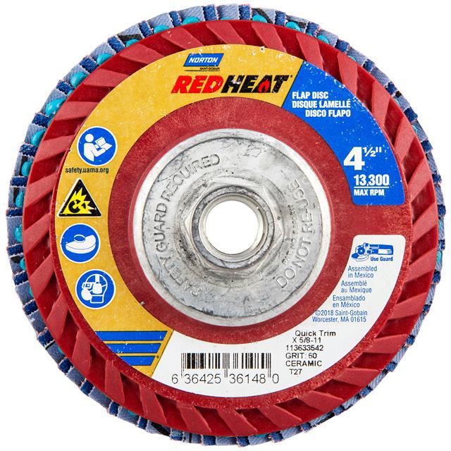 This is manufactured by Norton. The manufacturer part number is 63642536148. Its diameter is 4.50" (114.30mm). The product is widely employed in general purpose. It has a classic red colour. Abrasive Grade Info: coarse. In addition, bulk is the available packaging type of the product. While its abrasive grit is p60. It is manufactured from rugged ceramic alumina abrasive materials. The norton's product offers user-desired applications. The product is designated with the ear99 code number.