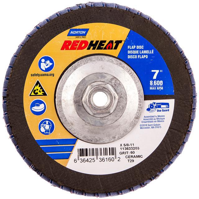 This is manufactured by Norton. The manufacturer part number is 63642536160. Its diameter is 7.00" (177.80mm). It is shipped in bulk package . It has a classic red colour. While its abrasive grit is p60. Abrasive Grade Info: coarse. The product is widely employed in general purpose. It is manufactured from rugged ceramic alumina abrasive materials. The product is designated with the ear99 code number.