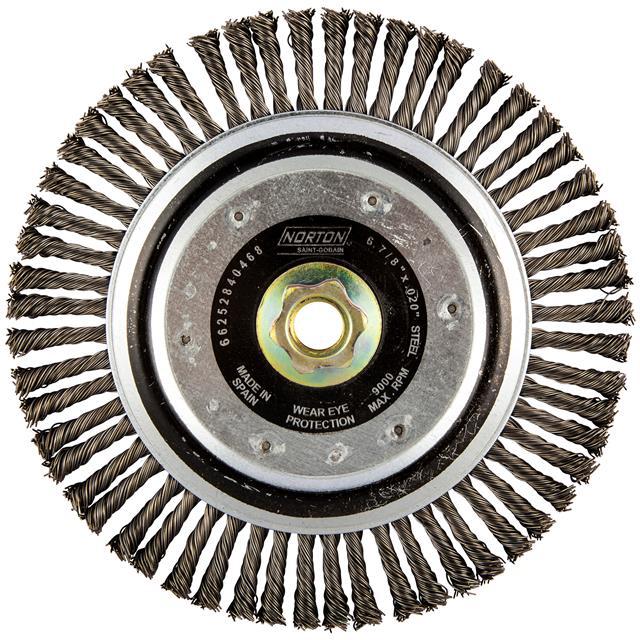 This is manufactured by Norton. The manufacturer part number is 66252840468. Its diameter is 6.88" (174.63mm). It is shipped in bulk package . The product is widely employed in general purpose. It comes in brush configuration. The product is designated with the ear99 code number.