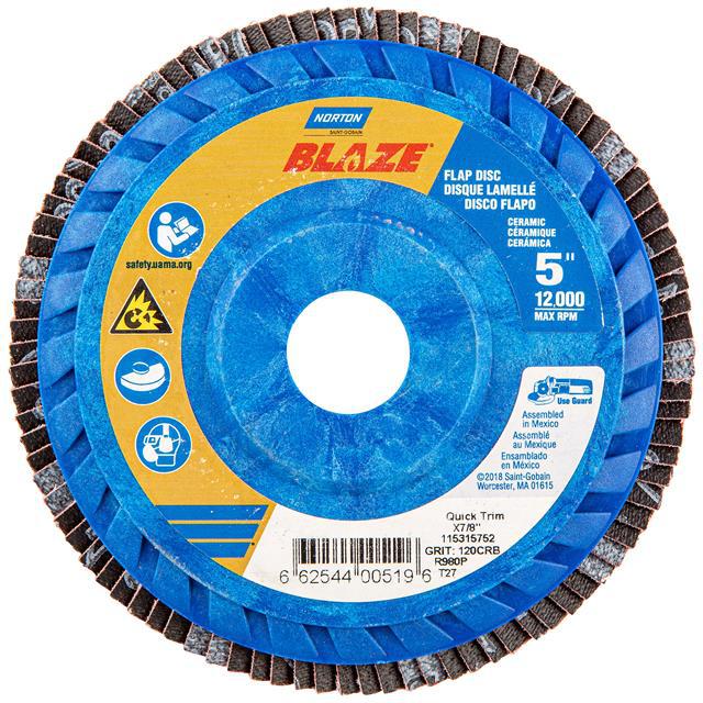 This is manufactured by Norton. The manufacturer part number is 66254400519. Its diameter is 5.00" (127.00mm). It is shipped in bulk package . It has a classic orange colour. While its abrasive grit is 120. Abrasive Grade Info: medium. The product is widely employed in general purpose. It is manufactured from rugged ceramic alumina abrasive materials. The product is designated with the ear99 code number.