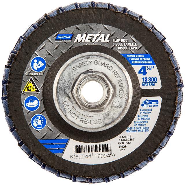 This is manufactured by Norton. The manufacturer part number is 66254419994. Its diameter is 4.50" (114.30mm). It is shipped in bulk package . It has a classic blue colour. While its abrasive grit is p40. Abrasive Grade Info: extra coarse. The product is widely employed in general purpose. It is manufactured from rugged zirconia alumina abrasive materials. The product is designated with the ear99 code number.