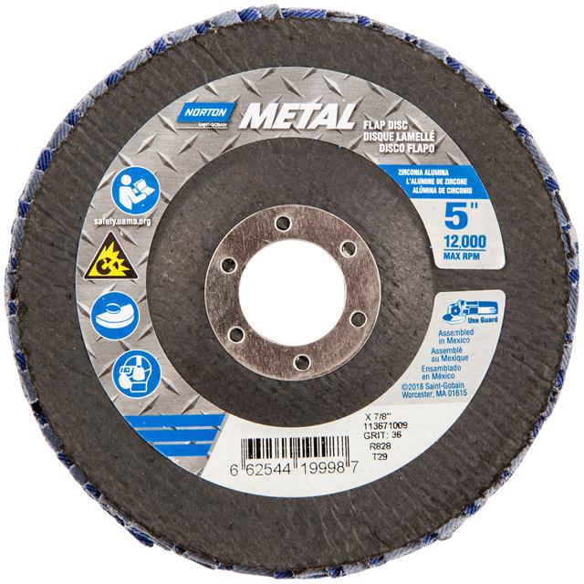 This is manufactured by Norton. The manufacturer part number is 66254419998. Its diameter is 5.00" (127.00mm). It is shipped in bulk package . It has a classic blue colour. While its abrasive grit is p36. Abrasive Grade Info: extra coarse. The product is widely employed in general purpose. It is manufactured from rugged zirconia alumina abrasive materials. The product is designated with the ear99 code number.