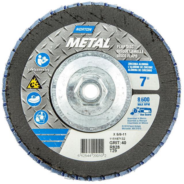 This is manufactured by Norton. The manufacturer part number is 66254420010. Its diameter is 7.00" (177.80mm). It is shipped in bulk package . It has a classic blue colour. While its abrasive grit is p40. Abrasive Grade Info: extra coarse. The product is widely employed in general purpose. It is manufactured from rugged zirconia alumina abrasive materials. The product is designated with the ear99 code number.