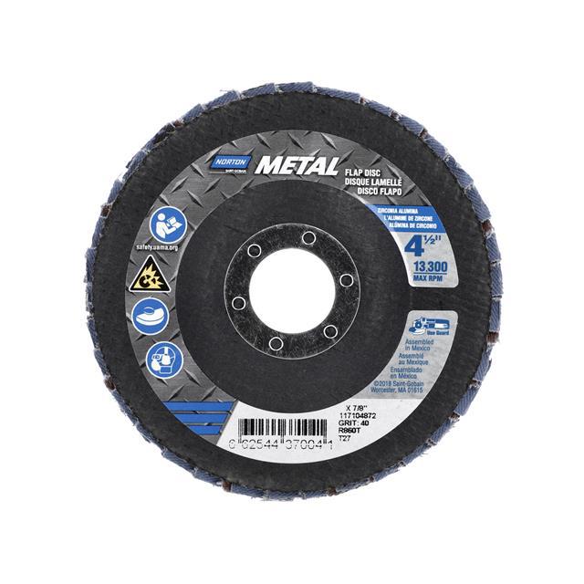 This is manufactured by Norton. The manufacturer part number is 66254437004. Its diameter is 4.50" (114.30mm). It is shipped in bulk package . It has a classic blue colour. While its abrasive grit is p40. Abrasive Grade Info: extra coarse. The product is widely employed in general purpose. It is manufactured from rugged zirconia alumina abrasive materials. The product is designated with the ear99 code number.