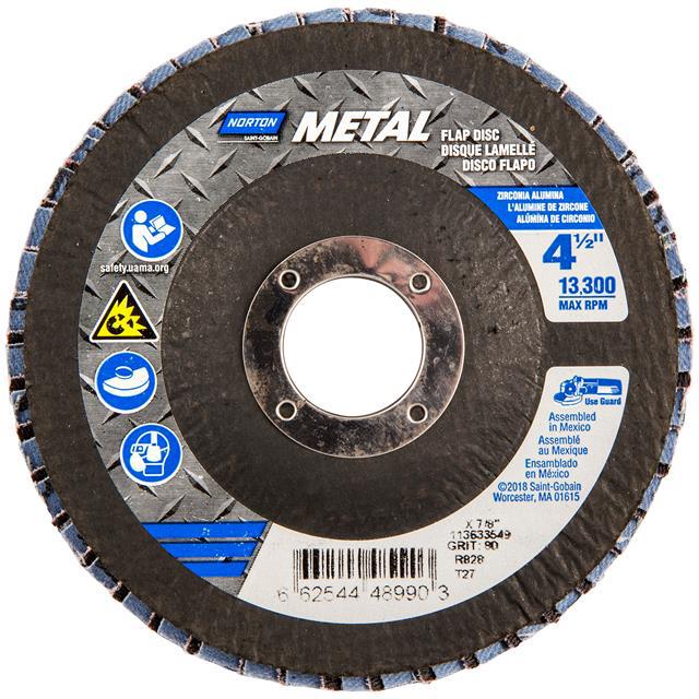 This is manufactured by Norton. The manufacturer part number is 66254448990. Its diameter is 4.50" (114.30mm). It is shipped in bulk package . It has a classic blue colour. While its abrasive grit is 80. Abrasive Grade Info: coarse. The product is widely employed in general purpose. It is manufactured from rugged zirconia alumina abrasive materials. The product is designated with the ear99 code number.