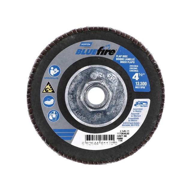 This is manufactured by Norton. The manufacturer part number is 66254461170. Its diameter is 4.50" (114.30mm). It is shipped in bulk package . It has a classic blue colour. While its abrasive grit is p60. Abrasive Grade Info: coarse. The product is widely employed in general purpose. It is manufactured from rugged zirconia alumina abrasive materials. The product is designated with the ear99 code number.