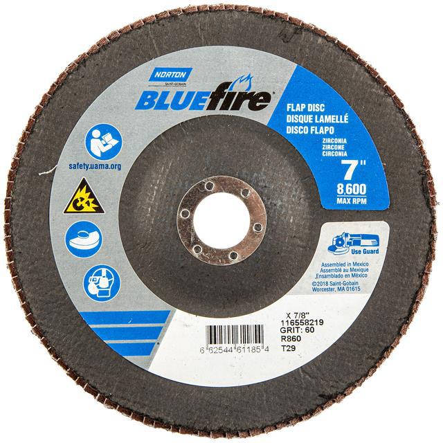 This is manufactured by Norton. The manufacturer part number is 66254461185. Its diameter is 7.00" (177.80mm). It is shipped in bulk package . It has a classic blue colour. While its abrasive grit is p60. Abrasive Grade Info: coarse. The product is widely employed in general purpose. It is manufactured from rugged zirconia alumina abrasive materials. The product is designated with the ear99 code number.
