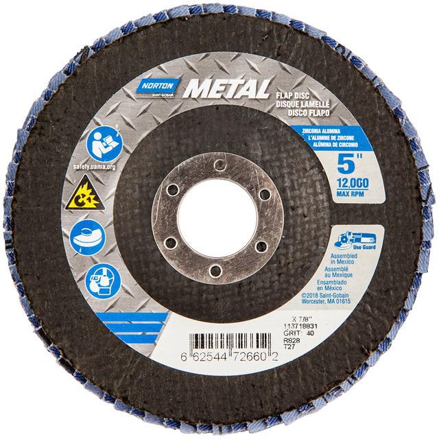 This is manufactured by Norton. The manufacturer part number is 66254472660. Its diameter is 5.00" (127.00mm). It is shipped in bulk package . It has a classic blue colour. While its abrasive grit is p40. Abrasive Grade Info: extra coarse. The product is widely employed in general purpose. It is manufactured from rugged zirconia alumina abrasive materials. The product is designated with the ear99 code number.