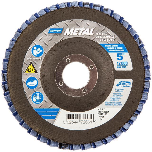 This is manufactured by Norton. The manufacturer part number is 66254472661. Its diameter is 5.00" (127.00mm). It is shipped in bulk package . It has a classic blue colour. While its abrasive grit is p60. Abrasive Grade Info: coarse. The product is widely employed in general purpose. It is manufactured from rugged zirconia alumina abrasive materials. The product is designated with the ear99 code number.
