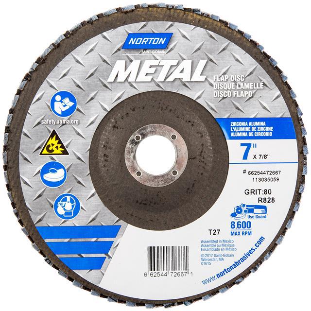 This is manufactured by Norton. The manufacturer part number is 66254472667. Its diameter is 7.00" (177.80mm). It is shipped in bulk package . It has a classic blue colour. While its abrasive grit is 80. Abrasive Grade Info: coarse. The product is widely employed in general purpose. It is manufactured from rugged zirconia alumina abrasive materials. The product is designated with the ear99 code number.