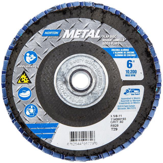 This is manufactured by Norton. The manufacturer part number is 66254491779. Its diameter is 6.00" (152.40mm). It is shipped in bulk package . It has a classic blue colour. While its abrasive grit is p40. Abrasive Grade Info: extra coarse. The product is widely employed in general purpose. It is manufactured from rugged zirconia alumina abrasive materials. The product is designated with the ear99 code number.