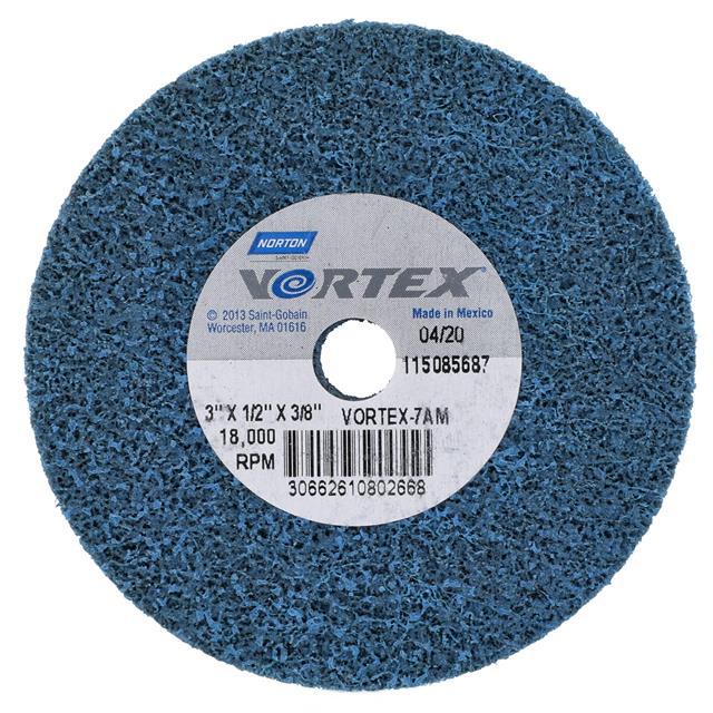 This is manufactured by Norton. The manufacturer part number is 66261080266. Its diameter is 3.00" (76.20mm). It is shipped in bulk package . It has a classic blue colour. Abrasive Grade Info: medium. The product is widely employed in general purpose. It is manufactured from rugged aluminum oxide abrasive materials. The product is designated with the ear99 code number.