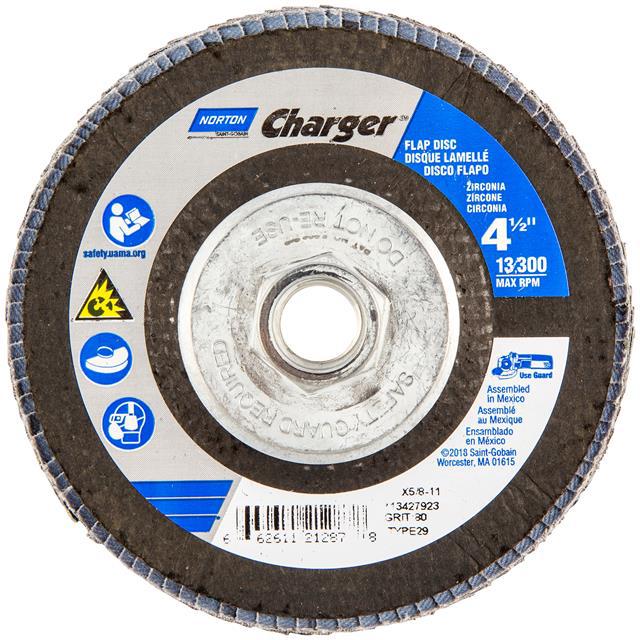 This is manufactured by Norton. The manufacturer part number is 66261121287. Its diameter is 4.50" (114.30mm). It is shipped in bulk package . It has a classic blue colour. While its abrasive grit is p80. Abrasive Grade Info: coarse. The product is widely employed in general purpose. It is manufactured from rugged zirconia alumina abrasive materials. The product is designated with the ear99 code number.
