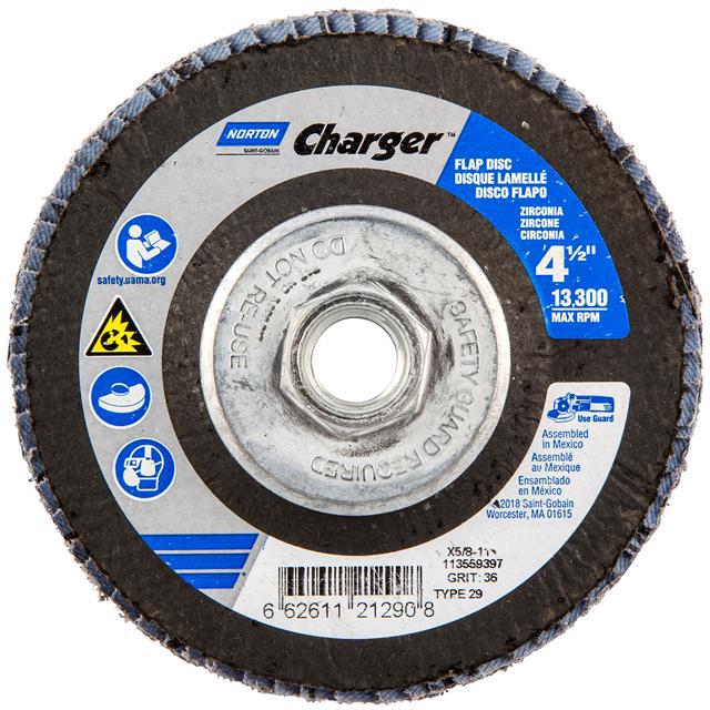 This is manufactured by Norton. The manufacturer part number is 66261121290. Its diameter is 4.50" (114.30mm). It is shipped in bulk package . It has a classic blue colour. While its abrasive grit is p36. Abrasive Grade Info: extra coarse. The product is widely employed in general purpose. It is manufactured from rugged zirconia alumina abrasive materials. The product is designated with the ear99 code number.
