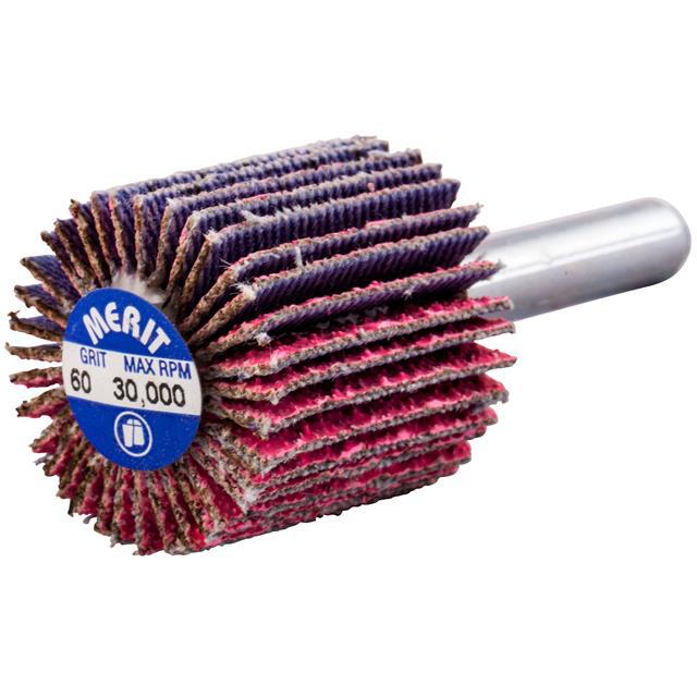 This is manufactured by Merit. The manufacturer part number is 69957339702. Its diameter is 1.00" (25.40mm). It is shipped in bulk package . It has a classic pink colour. While its abrasive grit is p60. Abrasive Grade Info: coarse. Furthermore, the product is 1.00" (25.40mm) wide. The product is widely employed in general purpose. It is manufactured from rugged ceramic alumina abrasive materials. It comes in flap wheel configuration. The product is designated with the ear99 code number.