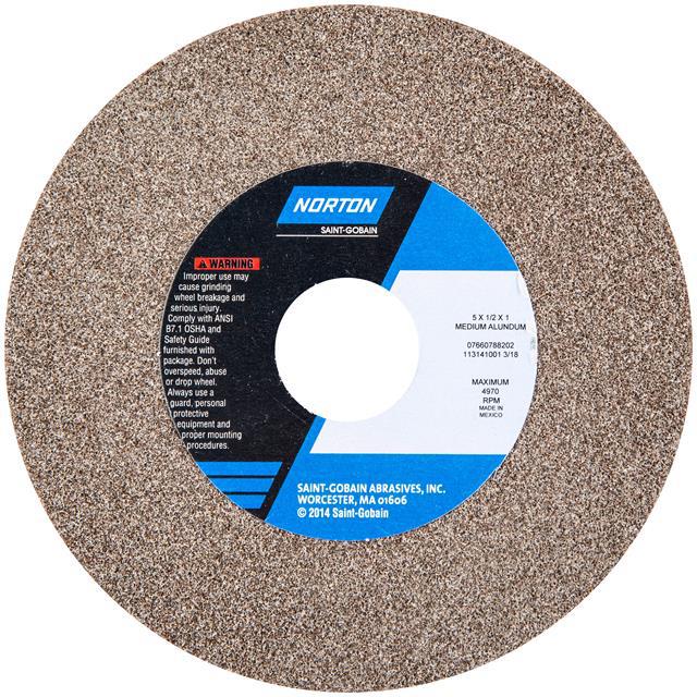 This is manufactured by Norton. The manufacturer part number is 07660788202. Its diameter is 5.00" (127.00mm). It is assigned with possible HTSUS value of 6804.22.4000. It is shipped in bulk package . While its abrasive grit is 60. Abrasive Grade Info: medium. The product is widely employed in general purpose. The product is designated with the ear99 code number.