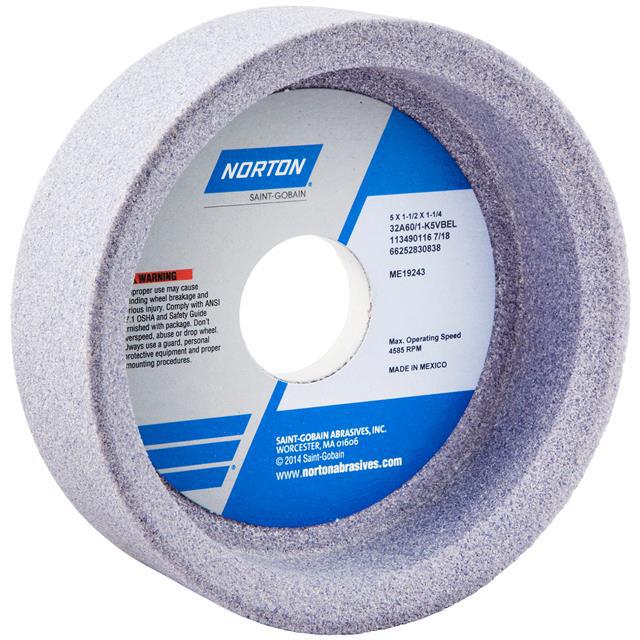 This is manufactured by Norton. The manufacturer part number is 66252830838. Its diameter is 5.00" (127.00mm). It is assigned with possible HTSUS value of 6804.22.4000. It is shipped in bulk package . While its abrasive grit is 60. Abrasive Grade Info: medium. The product is widely employed in general purpose. The product is designated with the ear99 code number.