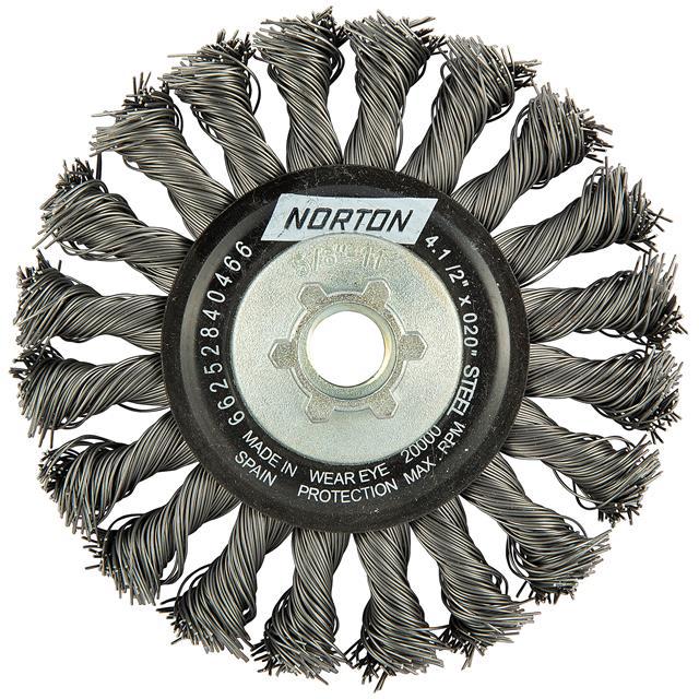 This is manufactured by Norton. The manufacturer part number is 66252840466. Its diameter is 4.50" (114.30mm). It is shipped in bulk package . The product is widely employed in general purpose. It comes in brush configuration. The product is designated with the ear99 code number.