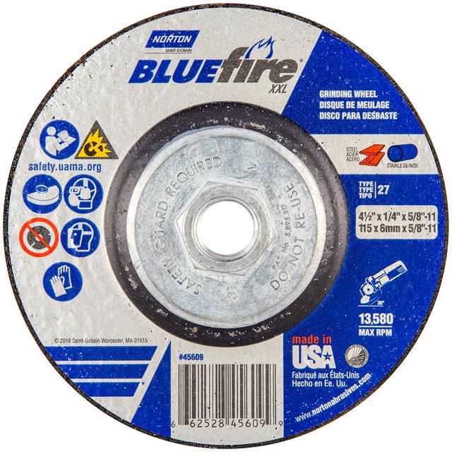 This is manufactured by Norton. The manufacturer part number is 66252845609. Its diameter is 4.50" (114.30mm). It is shipped in bulk package . It has a classic black colour. While its abrasive grit is 20. The product is widely employed in general purpose. It is manufactured from rugged ceramic alumina abrasive materials. It comes in depressed center wheels configuration. The product is designated with the ear99 code number.