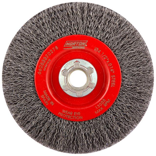 This is manufactured by Norton. The manufacturer part number is 66253370278. Its diameter is 4.50" (114.30mm). It is shipped in bulk package . It has a classic black colour. The product 4000 series, is a highly preferred choice for users. Furthermore, the product is 0.01" (0.36mm) wide. The product is widely employed in general purpose. It comes in brush configuration. The product is designated with the ear99 code number.
