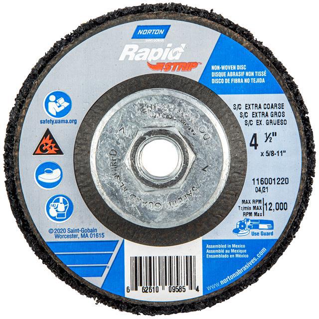 This is manufactured by Norton. The manufacturer part number is 66261009585. Its diameter is 4.50" (114.30mm). It is assigned with possible HTSUS value of 6805.30.0000. It is shipped in bulk package . It has a classic black colour. Abrasive Grade Info: extra coarse. The product is widely employed in general purpose. It is manufactured from rugged silicon carbide abrasive materials. The product is designated with the ear99 code number.