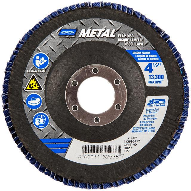 This is manufactured by Norton. The manufacturer part number is 66261132538. Its diameter is 4.50" (114.30mm). The product is widely employed in general purpose. It has a classic blue colour. While its abrasive grit is p40. In addition, bulk is the available packaging type of the product. Furthermore, the product is 0.98" (25.00mm) wide. Its accurate length is 0.79" (20.06mm). Abrasive Grade Info: extra coarse. It is manufactured from rugged zirconia alumina abrasive materials. The norton's product offers user-desired applications. It comes in flap disc configuration. The product is designated with the ear99 code number.