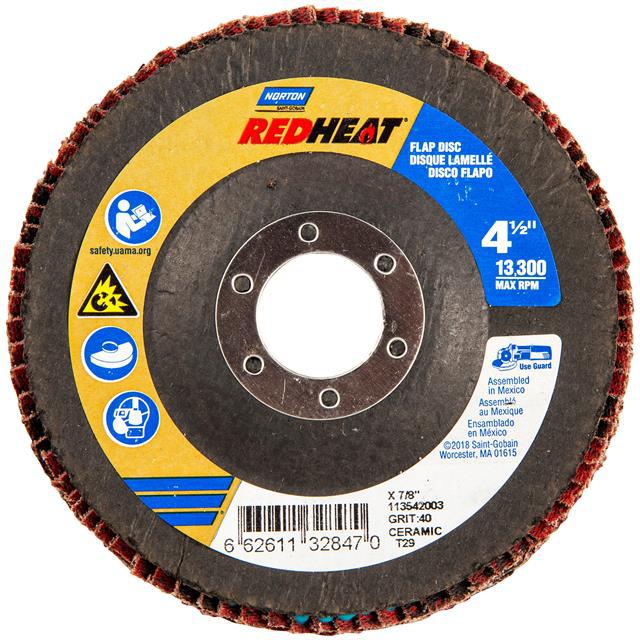 This is manufactured by Norton. The manufacturer part number is 66261132847. Its diameter is 4.50" (114.30mm). While its abrasive grit is 40. It is shipped in bulk package . It has a classic black colour. Its accurate length is 18.00" (457.20mm). Abrasive Grade Info: extra coarse. Furthermore, the product is 0.98" (25.00mm) wide. The product is widely employed in general purpose. It is manufactured from rugged ceramic alumina abrasive materials. It comes in disc configuration. The product is designated with the ear99 code number.