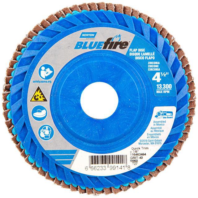 This is manufactured by Norton. The manufacturer part number is 66623399141. Its diameter is 4.50" (114.30mm). It is assigned with possible HTSUS value of 6805.30.0000. The product is widely employed in general purpose. It has a classic blue colour. Abrasive Grade Info: extra coarse. In addition, bulk is the available packaging type of the product. While its abrasive grit is p40. It is manufactured from rugged zirconia alumina abrasive materials. The norton's product offers user-desired applications. The product is designated with the ear99 code number.