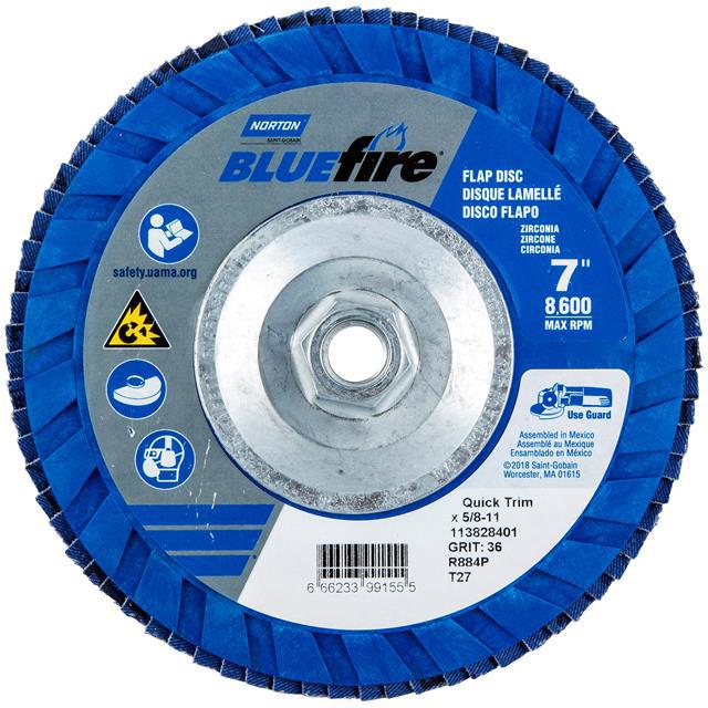 This is manufactured by Norton. The manufacturer part number is 66623399155. Its diameter is 7.00" (177.80mm). It is assigned with possible HTSUS value of 6805.30.0000. The product is widely employed in general purpose. It has a classic blue colour. Abrasive Grade Info: extra coarse. In addition, bulk is the available packaging type of the product. While its abrasive grit is p36. It is manufactured from rugged zirconia alumina abrasive materials. The norton's product offers user-desired applications. The product is designated with the ear99 code number.