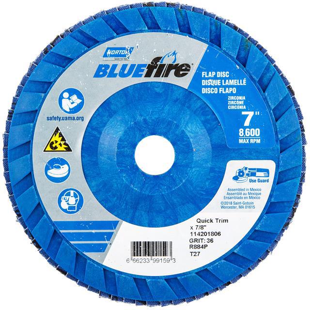 This is manufactured by Norton. The manufacturer part number is 66623399159. Its diameter is 7.00" (177.80mm). It is assigned with possible HTSUS value of 6805.30.0000. The product is widely employed in general purpose. It has a classic blue colour. Abrasive Grade Info: extra coarse. In addition, bulk is the available packaging type of the product. While its abrasive grit is p36. It is manufactured from rugged zirconia alumina abrasive materials. The norton's product offers user-desired applications. The product is designated with the ear99 code number.