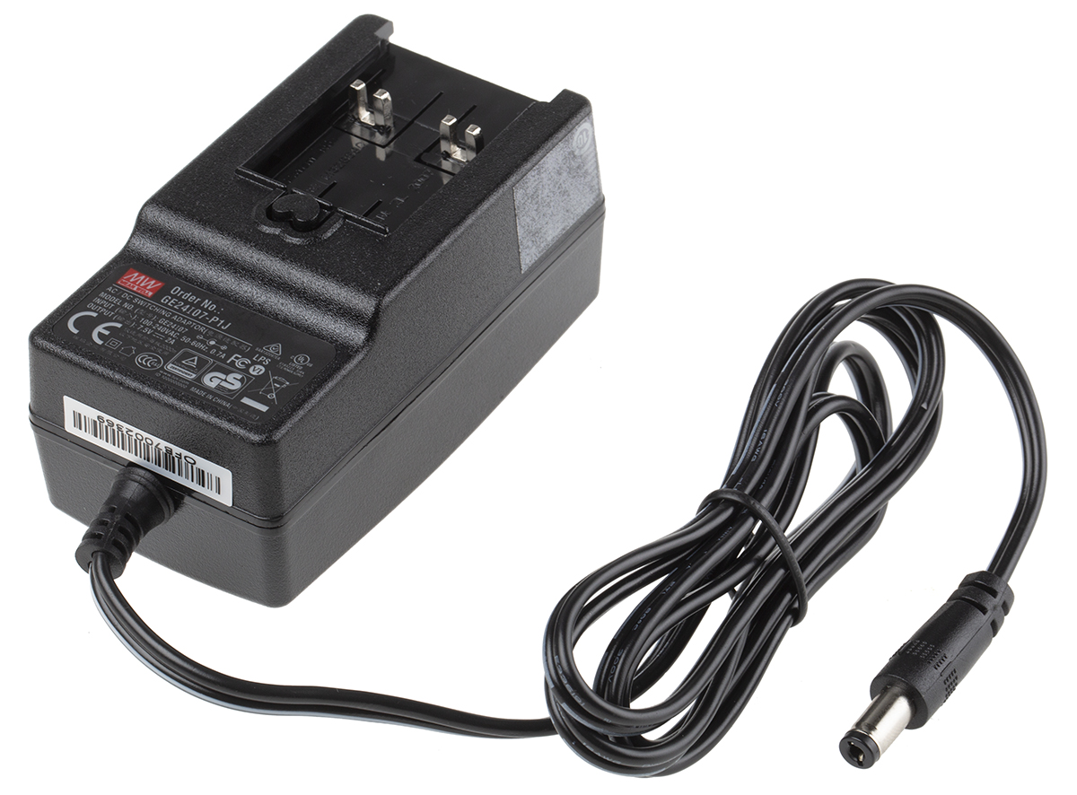 This is Plug In Power Supply 7.5V dc 2A Level V 1 Output P1J Switched Mode Power Supply manufactured by Mean Well. The manufacturer part number is GE24I07-P1J. Additionally, the product is supplied with 1 outputs. Load Regulation - ±5%. The product complies with all safety standards, such as erp compliant. It carries 2a output current. The adapter is a plug-in adapter. The product has +50°c maximum temperature. While its minimum temperature is -10°c. Input connector of universal plug. Its accurate length is 81mm. Features a versatile 2.1 x 5.5 x 11 mm centre positive output connector. The plug is a highly reliable australia/china, european plug, uk, us/japan with long service life. Furthermore, the product is 43mm wide. The product comes in 40.5mm depth. The MTBF values include 100000h. Its input voltage is 100 v ac, 110 v ac, 115 v ac, 120 v ac, 127 v ac, 220 v ac, 230 v ac, 240v ac. Features a 7.5v dc output voltage. Feature 15w of power rating. Furthermore, its energy efficiency level is vi . It comes in ac/dc adapter configuration. Furthermore, the cable has a 1m of length.