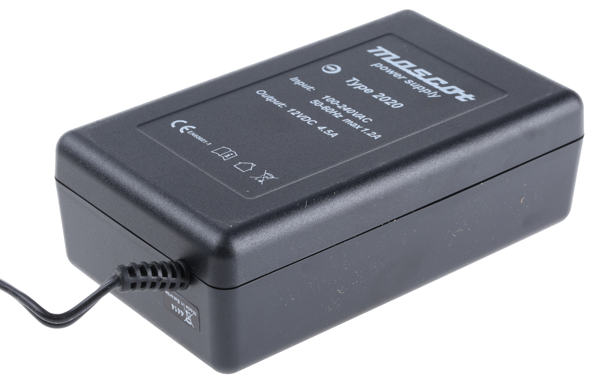 This is Desktop Power Supply 90 → 264 V ac 12V dc 4.5A Output Medical Approved 1 Output 3-Pin IEC manufactured by Mascot. The manufacturer part number is 2020000041. Additionally, the product is supplied with 1 outputs. Load Regulation - ±0.5%. It carries 4.5a output current. Furthermore, the product is 80mm wide. The product has +40°c maximum temperature. While its minimum temperature is -20°c. Input connector of iec 320. Moreover, the product has about ±0.5% of line regulation range . Its accurate length is 135mm. Features a versatile 2.1 x 5.5 x 12 mm female coaxial plug with snap-lock, 2.5 x 5.5 x 12 mm female coaxial plug with snap-lock output connector. The plug is a highly reliable 3-pin iec with long service life. It is a highly efficient product with an 80% of high efficiency. The product comes in 44mm depth. The adapter is a power brick adapter. Its input voltage is 198 → 264 v ac, 260 → 340v dc. Medical Approval - yes. Features a 12v dc output voltage. Furthermore, the cable has a 1800mm of length.