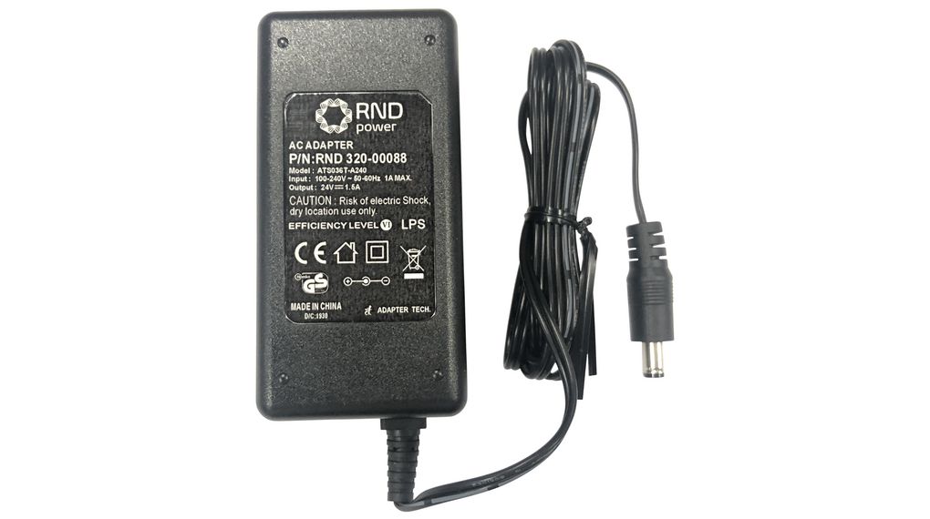 This is 36W Portable Plug Adapter 24V dc Output 1.5A Output manufactured by RND. The manufacturer part number is RND 320-00088. It carries 1.5a output current. The plug is a highly reliable type e with long service life. The adapter is a portable. Features a 24v dc output voltage. Feature 36w of power rating. Its input voltage is 100 → 240v ac.