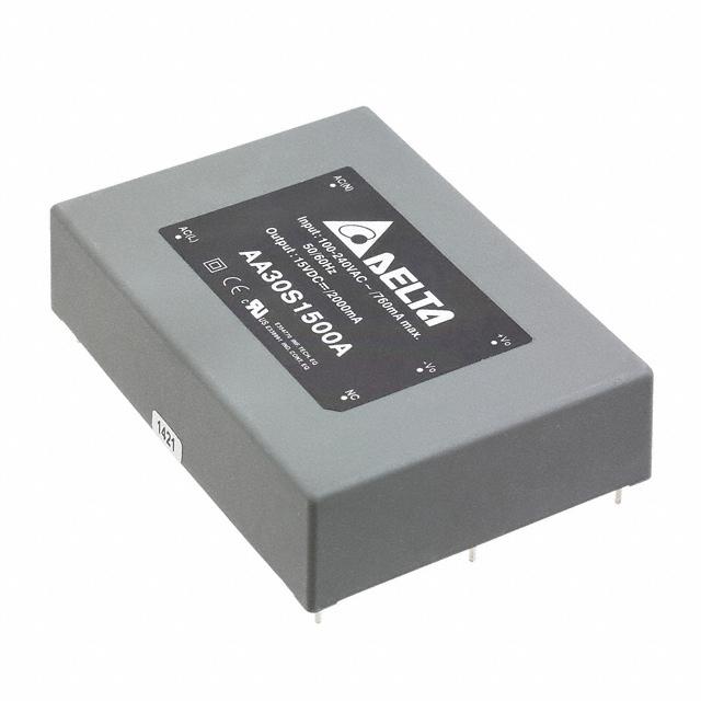 This is manufactured by Delta Electronics. The manufacturer part number is AA30S1500A. Moreover, it corresponds to aa30s, a base product number of the product. It is assigned with possible HTSUS value of 8504.40.6018. The product is rohs3 compliant. It has a 15v output voltage. The product features power and watts of 30 w. The maximum product's output current is 2a. It is approved by ce, cul, ul. Moreover, the product comes in 7-dip module, 5 leads. The possible product's input voltage is 85 ~ 264 vac. The product is available in through hole configuration. It comes in enclosed configuration. Load Regulation - ±0.5%. The product is widely employed in ite (commercial). In addition, it is reach unaffected. It is a highly efficient product with an 80% of high efficiency. Has a line regulation of ±0.2%. It is shipped in box package . The product's diameters include 3.50" l x 2.50" w x 0.85" h (89.9mm x 63.5mm x 21.7mm). Its typical moisture sensitivity level is 1 (unlimited). The splendid features of the product include universal input. The typical product's weight is 0.39 lb (176.9 g). The product aa30s (30w), is a highly preferred choice for users. The product has -25°c ~ 70°c (with derating) operating temperature range. Standard number include: 60950-1. Additionally, the product is supplied with 1 outputs. The product is designated with the ear99 code number.