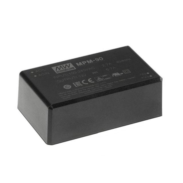 This is manufactured by MEAN WELL USA Inc.. The manufacturer part number is MPM-90-15. It is assigned with possible HTSUS value of 8504.40.9520. The product is rohs3 compliant. It has a 15v output voltage. The product features power and watts of 85 w. The maximum product's output current is 5.67a. It is approved by cb, ce, curus, eac, tuv. Moreover, the product comes in 4-dip module. The possible product's input voltage is 80 ~ 264 vac, 113 ~ 370 vdc. It comes in enclosed configuration. Load Regulation - ±0.5%. The product is widely employed in household appliances, medical. In addition, it is reach unaffected. It is a highly efficient product with an 92.5% of high efficiency. Has a line regulation of ±0.5%. It is shipped in box package . The product's diameters include 3.43" l x 2.05" w x 1.16" h (87.0mm x 52.0mm x 29.5mm). It has a long 12 weeks standard lead time. Its typical moisture sensitivity level is not applicable. The product is available in through hole configuration. The product mpm-90 (90w), is a highly preferred choice for users. The product has -30°c ~ 80°c (with derating) operating temperature range. Moreover, it corresponds to mpm-90, a base product number of the product. Additionally, the product is supplied with 1 outputs. The product is designated with the ear99 code number.