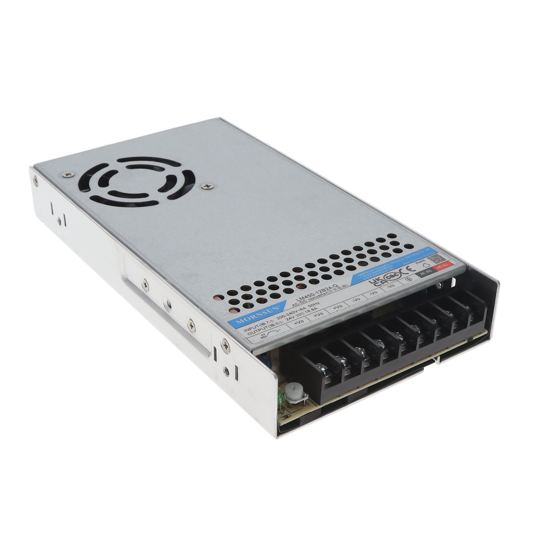 This is manufactured by Mornsun America, LLC. The manufacturer part number is LM450-12B24-Q. It is assigned with possible HTSUS value of 8504.40.9530. Additionally, the product is supplied with 1 outputs. It has a 24v output voltage. The product features power and watts of 451w. It is approved by ce. The possible product's input voltage is 176 ~ 264 vac, 240 ~ 373 vdc. It comes in enclosed, conformal coated configuration. The product is widely employed in ite (commercial). In addition, it is reach unaffected. It is a highly efficient product with an 87% of high efficiency. It is shipped in box package . Does it require minimum load? no. The product's diameters include 8.47" l x 4.53" w x 1.18" h (215.0mm x 115.0mm x 30.0mm). It has a long 8 weeks standard lead time. 3 kv of isolation voltage. Its typical moisture sensitivity level is not applicable. The splendid features of the product include standby output, universal input. The product is available in chassis mount configuration. The product lm450-12bxx-q (450w), is a highly preferred choice for users. It has a 18.8 a current - output. The product has -30°c ~ 70°c (with derating) operating temperature range. Standard number include: 62368-1. The product is designated with the ear99 code number.