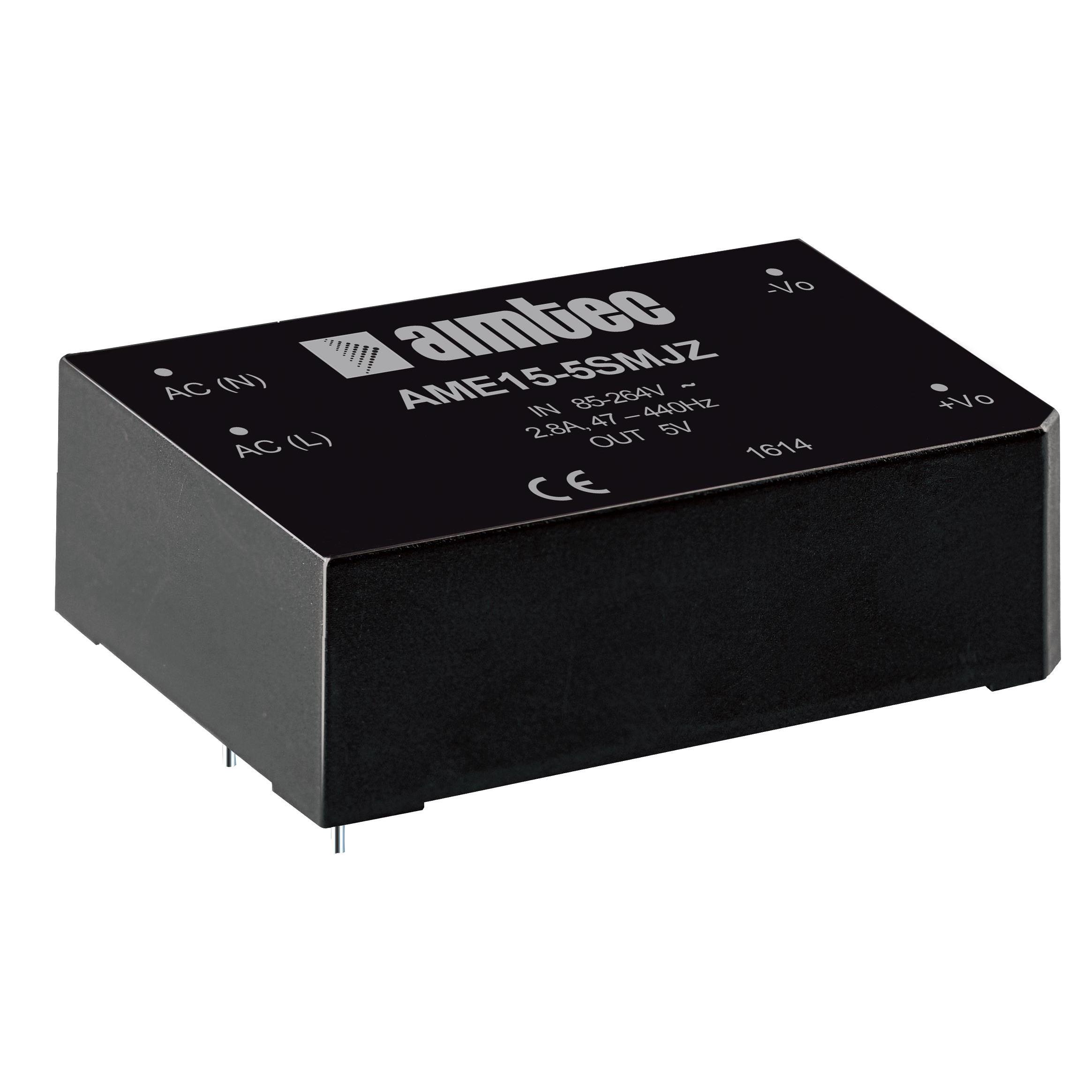 This is manufactured by aimtec. The manufacturer part number is AME15-12SMJZ. It is assigned with possible HTSUS value of 8504.40.9510. The product is rohs3 compliant. The product features power and watts of 15 w. The maximum product's output current is 1.25a. It is approved by ce. Moreover, the product comes in 4-dip module. The possible product's input voltage is 85 ~ 264 vac, 120 ~ 370 vdc. It comes in enclosed configuration. The product is widely employed in medical. It has a 12v output voltage. It is a highly efficient product with an 83% of high efficiency. The aimtec's product offers user-desired applications. Additionally, the product is supplied with 1 outputs. The product's diameters include 2.44" l x 1.77" w x 0.89" h (62.0mm x 45.0mm x 22.5mm). Its typical moisture sensitivity level is 1 (unlimited). The splendid features of the product include universal input. The product is available in through hole configuration. The product ame15-mjz (15w), is a highly preferred choice for users. The product has -40°c ~ 70°c (with derating) operating temperature range. In addition, bulk is the available packaging type of the product. Moreover, it corresponds to ame15, a base product number of the product. The product is designated with the ear99 code number.
