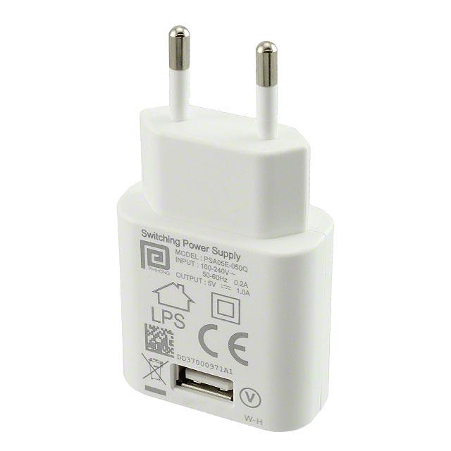 This is manufactured by Phihong USA. The manufacturer part number is PSA05E-050QW. It is assigned with possible HTSUS value of 8504.40.7001. The product is rohs compliant. Features no load power consumption score of 30mw (max). The product features power and watts of 5 w. The maximum product's output current is 1a. It is approved by ce. It carries fixed blade input type. The possible product's input voltage is 90 ~ 264 vac. The product is designed as a nice wall mount (class ii). The product is widely employed in ite (commercial). Input connector of cee 7/16. Features a versatile usb a receptacle output connector. It is a highly efficient product with an level v of high efficiency. The phihong usa's product offers user-desired applications. The product is utilised in various regions, including europe. The product's diameters include 0.87" l x 1.65" w x 2.37" h (21.0mm x 43.0mm x 60.2mm). Its typical moisture sensitivity level is not applicable. The typical product's weight is 0.176 lb (79.83 g). The product psa05e (5w), is a highly preferred choice for users. The product has 0°c ~ 40°c operating temperature range. Furthermore, the output voltage is 5v. In addition, box is the available packaging type of the product. The product is designated with the ear99 code number.
