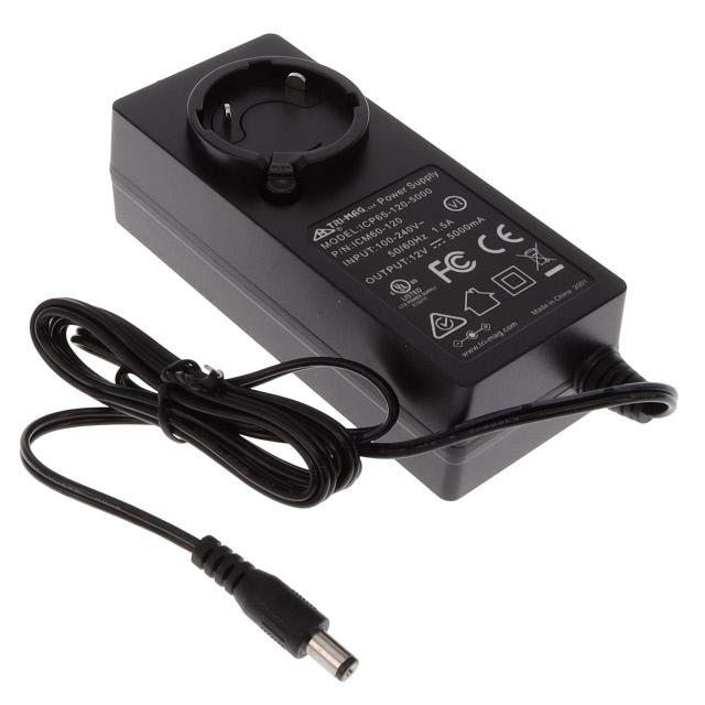 This is manufactured by Tri-Mag, LLC. The manufacturer part number is ICM60-120. It is assigned with possible HTSUS value of 8504.40.9520. The product is rohs3 compliant. The product features a [Ploarization] polarity. Features no load power consumption score of 100mw (max). The product features power and watts of 60 w. The maximum product's output current is 5a. It is approved by cul, fcc, ul. It carries fixed blade, multi-blade (sold separately) input type. The possible product's input voltage is 90 ~ 264 vac. The product is designed as a nice wall mount (class ii). The product is widely employed in ite (commercial). Input connector of nema 1-15p, multi-blade (sold separately). In addition, it is reach unaffected. Features a versatile barrel plug, 2.1mm i.d. x 5.5mm o.d. x 9.5mm output connector. It is a highly efficient product with an level vi of high efficiency. The tri-mag, llc's product offers user-desired applications. The product is utilised in various regions, including international. The product's diameters include 4.62" l x 2.14" w x 1.40" h (117.3mm x 54.4mm x 35.6mm). The cord is 39.4" (1.00m) long. It has a long 52 weeks standard lead time. Its typical moisture sensitivity level is not applicable. The typical product's weight is 0.441 lb (200.03 g). The product tri-mag®, icm60 (60w), is a highly preferred choice for users. The product has 0°c ~ 40°c operating temperature range. Furthermore, the output voltage is 12v. In addition, box is the available packaging type of the product. Standard number include: 62368-1. Moreover, it corresponds to icm60, a base product number of the product. The product is designated with the ear99 code number.