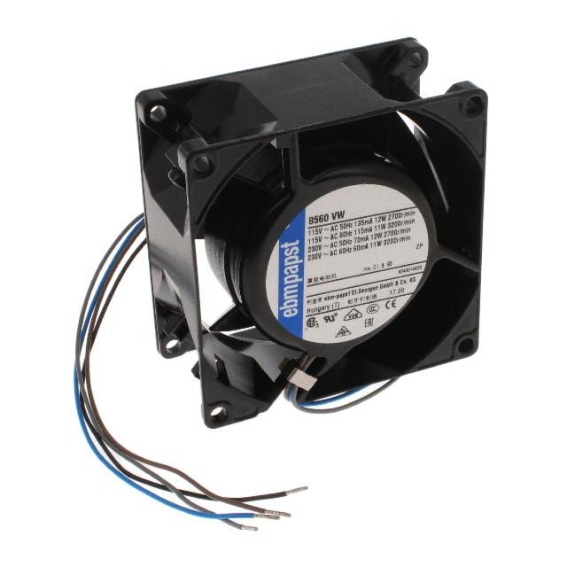 This is manufactured by ebm-papst Inc.. The manufacturer part number is 8560VW. It is assigned with possible HTSUS value of 8414.59.6590. The product is rohs3 compliant. Furthermore, the product is 38.00mm wide. The product features power and watts of 11.00w. It has a 36.0 cfm (1.01m³/min) air flow rate. It has noise values of 34.0db(a). It also exhibits voltage rating of 115/230vac. This has integrated with a sintec, a bearing with long-lasting features. The ebm-papst inc.'s product offers user-desired applications. The product's diameters include square - 80mm l x 80mm h. The product features 2 wire leads termination style. Its typical moisture sensitivity level is 1 (unlimited). The splendid features of the product include dual voltage. The typical product's weight is 1.1 lbs (499.0 g). The product 8000v, is a highly preferred choice for users. In addition, bulk is the available packaging type of the product. The latest designed fan is a type of tubeaxial offering unmatchable applications. The product is designated with the ear99 code number.
