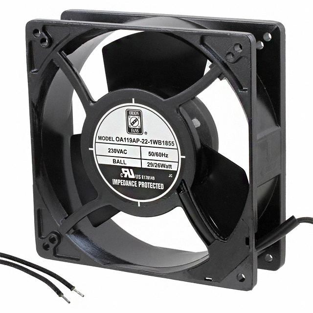 This is manufactured by Orion Fans. The manufacturer part number is OA119AP-22-1WB1855. The blades are constructed from robust metal materials. It is assigned with possible HTSUS value of 8414.59.6590. The product is rohs3 compliant. Furthermore, the product is 38.50mm wide. The product features power and watts of 26.00w. It has a 128.0 cfm (3.58m³/min) air flow rate. It is approved by curus, tuv. While the voltage range is 200 ~ 240vac. It has noise values of 48.0db. It also exhibits voltage rating of 230vac. This product offers longer life span for 50000 hrs @ 55°c. In addition, it is reach unaffected. This has integrated with a ball, a bearing with long-lasting features. The product has -22 ~ 176°f (-30 ~ 80°c) operating temperature range. It provides maximum rpm up to 2950 rpm. The orion fans's product offers user-desired applications. The product has a 0.290 in h2o (72.2 pa) static pressure. The product's diameters include square - 127mm l x 127mm h. The product features 2 wire leads termination style. It has a long 19 weeks standard lead time. Its typical moisture sensitivity level is not applicable. It is IP rated with ip55 - dust protected, water resistant. The typical product's weight is 1.4 lbs (635 g). The product oa119, is a highly preferred choice for users. The frame of the product is made from highly durable aluminum materials. In addition, box is the available packaging type of the product. The latest designed fan is a type of tubeaxial offering unmatchable applications. Moreover, it corresponds to oa119, a base product number of the product. The product is designated with the ear99 code number.