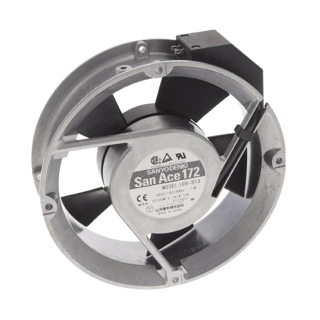 This is manufactured by Sanyo Denki America Inc.. The manufacturer part number is 109-313. The blades are constructed from robust plastic materials. It is assigned with possible HTSUS value of 8414.59.6590. The product is rohs3 compliant. Furthermore, the product is 51.00mm wide. The product features power and watts of 25.00w. It has a 226.1 cfm (6.33m³/min) air flow rate. It is approved by ce, csa, pse, tuv, ul. It has noise values of 51.0db(a). It also exhibits voltage rating of 230vac. In addition, it is vendor undefined. This has integrated with a ball, a bearing with long-lasting features. The product has -22 ~ 140°f (-30 ~ 60°c) operating temperature range. It provides maximum rpm up to 3500 rpm. This product offers longer life span for 25000 hrs @ 60°c. The product has a 0.787 in h2o (196.0 pa) static pressure. It is shipped in box package . The product's diameters include round - 172mm dia. The product features 2 terminals termination style. It has a long 18 weeks standard lead time. Additionally, the product's output is 0.110a. Its typical moisture sensitivity level is not applicable. The typical product's weight is 2.3 lbs (1 kg). The product san ace 172, is a highly preferred choice for users. The frame of the product is made from highly durable aluminum materials. The latest designed fan is a type of tubeaxial offering unmatchable applications. The product is designated with the ear99 code number.