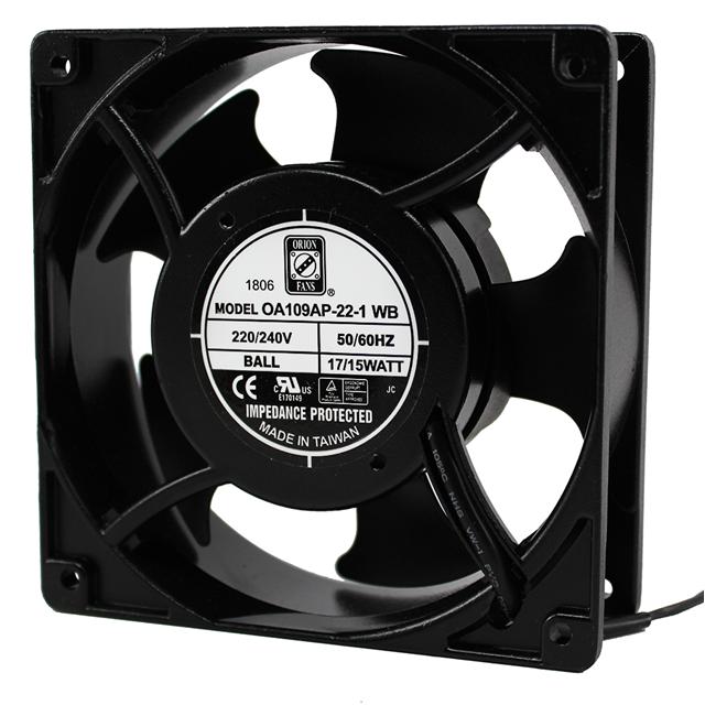 This is manufactured by Orion Fans. The manufacturer part number is OA109AP-22-1WB. It is assigned with possible HTSUS value of 8414.59.6590. The product is rohs3 compliant. Furthermore, the product is 38.50mm wide. The product features power and watts of 15.00w. It has a 110.0 cfm (3.08m³/min) air flow rate. It is approved by ce, curus, tuv, ur. It has noise values of 42.0db. It also exhibits voltage rating of 230vac. In addition, it is reach unaffected. This has integrated with a ball, a bearing with long-lasting features. It provides maximum rpm up to 3000 rpm. The orion fans's product offers user-desired applications. The product has a 0.280 in h2o (69.7 pa) static pressure. The product's diameters include square - 120mm l x 120mm h. The product features 2 wire leads termination style. It has a long 19 weeks standard lead time. Its typical moisture sensitivity level is not applicable. The typical product's weight is 1.2 lbs (544.3 g). The product oa109, is a highly preferred choice for users. The product has -4 ~ 167°f (-20 ~ 75°c) operating temperature range. In addition, box is the available packaging type of the product. The latest designed fan is a type of tubeaxial offering unmatchable applications. Moreover, it corresponds to oa109ap, a base product number of the product. The product is designated with the ear99 code number.