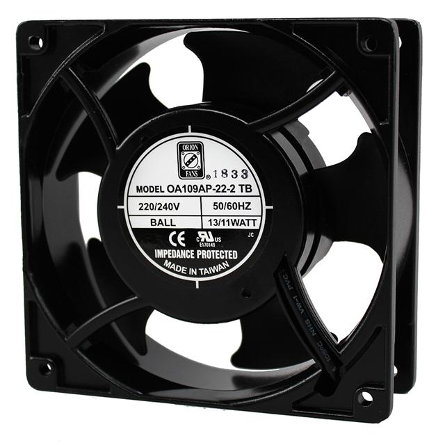 This is manufactured by Orion Fans. The manufacturer part number is OA109AP-22-2TB. The blades are constructed from robust polybutylene terephthalate (pbt) materials. It is assigned with possible HTSUS value of 8414.59.6590. The product is rohs3 compliant. Furthermore, the product is 38.50mm wide. The product features power and watts of 11.00w. It has a 71.0 cfm (1.99m³/min) air flow rate. It is approved by ce, curus, tuv, ur. While the voltage range is 160 ~ 260vac. It has noise values of 35.0db. It also exhibits voltage rating of 230vac. This product offers longer life span for 70000 hrs @ 40°c. In addition, it is reach unaffected. This has integrated with a ball, a bearing with long-lasting features. The product has -4 ~ 167°f (-20 ~ 75°c) operating temperature range. It provides maximum rpm up to 2300 rpm. The orion fans's product offers user-desired applications. The product has a 0.210 in h2o (52.3 pa) static pressure. The product's diameters include square - 120mm l x 120mm h. The product features 2 terminals termination style. It has a long 19 weeks standard lead time. Its typical moisture sensitivity level is not applicable. The typical product's weight is 1.2 lbs (544.3 g). The product oa109, is a highly preferred choice for users. The frame of the product is made from highly durable aluminum materials. In addition, box is the available packaging type of the product. The latest designed fan is a type of tubeaxial offering unmatchable applications. Moreover, it corresponds to oa109ap, a base product number of the product. The product is designated with the ear99 code number.