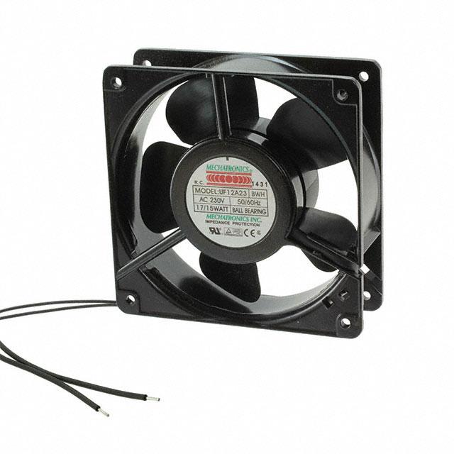 This is manufactured by Mechatronics Fan Group. The manufacturer part number is UF12A23-BWHR. The blades are constructed from robust polybutylene terephthalate (pbt) materials. It is assigned with possible HTSUS value of 8414.59.6590. The product is rohs3 compliant. Furthermore, the product is 38.00mm wide. The product features power and watts of 15.00w. It has a 106.0 cfm (2.97m³/min) air flow rate. It is approved by ce, cul, tuv, ul. It has noise values of 46.0db(a). It also exhibits voltage rating of 230vac. This has integrated with a ball, a bearing with long-lasting features. The product has -40 ~ 158°f (-40 ~ 70°c) operating temperature range. It provides maximum rpm up to 3100 rpm. This product offers longer life span for 50000 hrs @ 25°c. The product has a 0.350 in h2o (87.2 pa) static pressure. It is shipped in bulk package . The product's diameters include square - 120mm l x 120mm h. The product features 2 wire leads termination style. It has a long 22 weeks standard lead time. Additionally, the product's output is 0.080a. Its typical moisture sensitivity level is 1 (unlimited). The typical product's weight is 1.2 lbs (544.3 g). The product uf12a, is a highly preferred choice for users. The frame of the product is made from highly durable aluminum materials. The latest designed fan is a type of tubeaxial offering unmatchable applications. Moreover, it corresponds to uf12a, a base product number of the product. The product is designated with the ear99 code number.